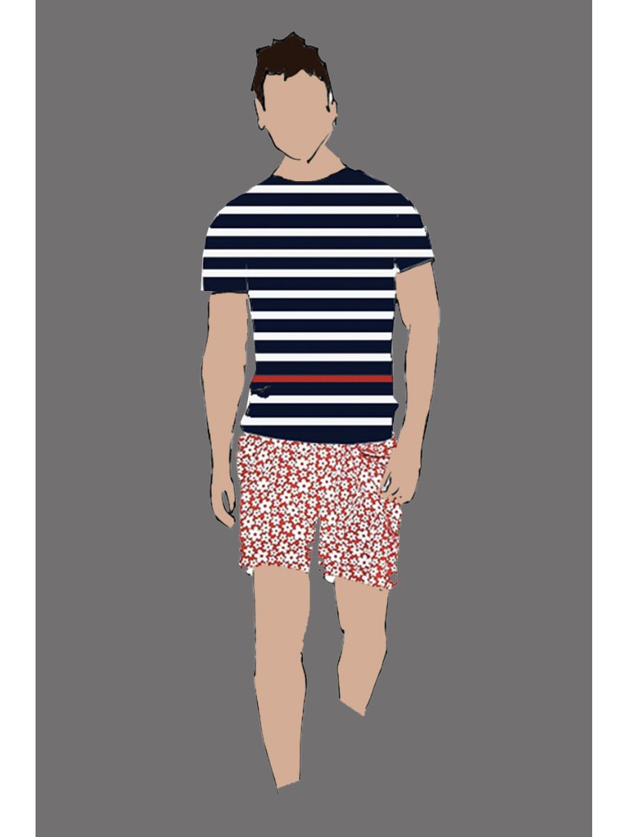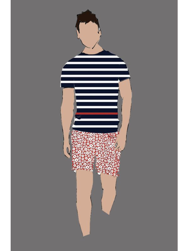 182087 - Uniform Short Male Red w/Floral Print White (Pool Bar)